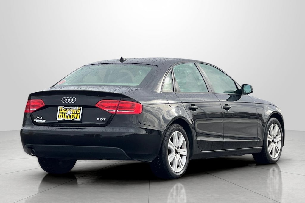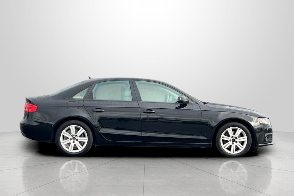 Black 2011 Audi A4 2.0T Premium FrontTrak FrontTrak CVT with Multitronic 2.0L 4-Cylinder TFSI DOHC CVT with Multitronic, Leather, 10 Speakers, 4-Wheel Disc Brakes, 7.5J x 17" 7-Spoke Alloy Wheels, ABS brakes, Air Conditioning, Alloy wheels, AM/FM radio: SIRIUS, Anti-whiplash front head restraints, Automatic temperature control, Brake assist, Bumpers: body-color, CD player, Driver door bin, Driver vanity mirror, Dual front impact airbags, Dual front side impact airbags, Electronic Stability Control, Four wheel independent suspension, Front anti-roll bar, Front Bucket Seats, Front Center Armrest, Front fog lights, Front reading lights, Heated door mirrors, Illuminated entry, Leather Seating Surfaces, Leather Shift Knob, Leather steering wheel, Low tire pressure warning, Occupant sensing airbag, Outside temperature display, Overhead airbag, Overhead console, Panic alarm, Passenger door bin, Passenger vanity mirror, Power door mirrors, Power driver seat, Power Front Seats, Power moonroof, Power passenger seat, Power steering, Power windows, Radio data system, Radio: AM/FM/1CD Player Concert System, Rear anti-roll bar, Rear fog lights, Rear reading lights, Rear seat center armrest, Rear window defroster, Remote keyless entry, Security system, Speed control, Speed-sensing steering, Steering wheel mounted audio controls, Tachometer, Telescoping steering wheel, Tilt steering wheel, Traction control, Turn signal indicator mirrors, Variably intermittent wipers, CVT with Multitronic, Leather.