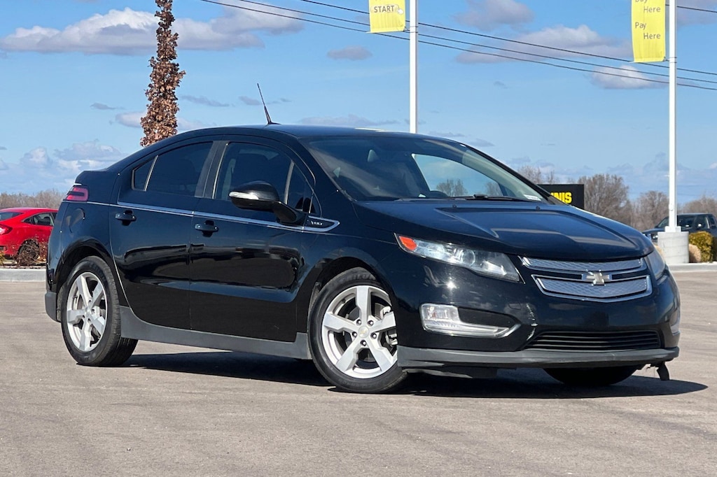 Black 2014 Chevrolet Volt FWD 1-Speed Automatic Voltec Electric Drive Unit 17" 5-Spoke Painted Aluminum Wheels, 4-Wheel Disc Brakes, 6 Speakers, 6-Speaker Audio System Feature, ABS brakes, Air Conditioning, Alloy wheels, AM/FM radio: SiriusXM, Automatic temperature control, Brake assist, Bumpers: body-color, Cargo Net, CD player, Compass, Delay-off headlights, Driver door bin, Driver vanity mirror, Dual front impact airbags, Dual front side impact airbags, Electronic Stability Control, Emergency communication system: OnStar Directions & Connections, Front anti-roll bar, Front Bucket Seats, Front Center Armrest, Front reading lights, Front wheel independent suspension, Fully automatic headlights, Garage door transmitter, Heated door mirrors, Illuminated entry, Knee airbag, Low tire pressure warning, Occupant sensing airbag, Outside temperature display, Overhead airbag, Overhead console, Panic alarm, Passenger door bin, Passenger vanity mirror, Power door mirrors, Power steering, Power windows, Premium audio system: Chevrolet MyLink, Premium Cloth Seat Trim, Radio: Chevrolet MyLink AM/FM Stereo w/CD Player, Rear reading lights, Rear window defroster, Remote keyless entry, Security system, SIRIUSXM Satellite Radio, SiriusXM Travel Link, Speed control, Speed-sensing steering, Spoiler, Steering wheel mounted audio controls, Telescoping steering wheel, Tilt steering wheel, Traction control, Trip computer, Turn signal indicator mirrors, Variably intermittent wipers.