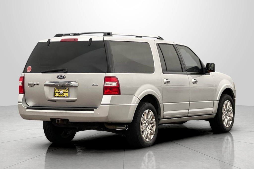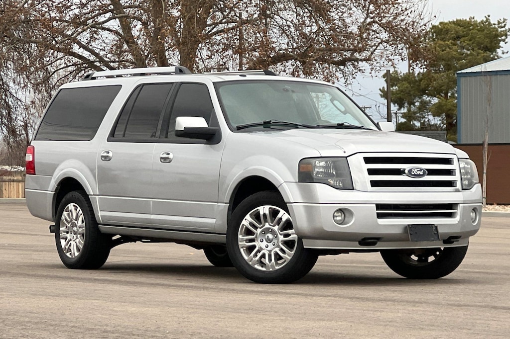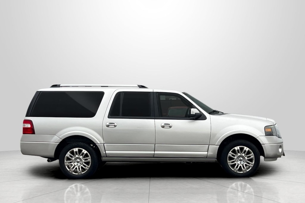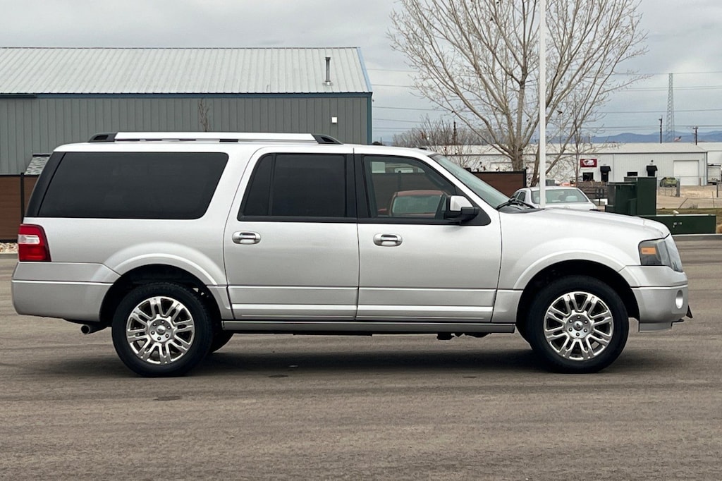 Ingot Silver 2011 Ford Expedition EL Limited 4WD 6-Speed Automatic 5.4L V8 SOHC 24V FFV 4WD, 20" Polished-Aluminum Wheels, 2nd Row Bucket Seats, 3.73 Axle Ratio, 3rd row seats: split-bench, 4-Wheel Disc Brakes, 7 Speakers, ABS brakes, Adjustable pedals, Air Conditioning, All-Weather Floor Mats (RPO), Alloy wheels, AM/FM radio: SIRIUS, Auto-dimming door mirrors, Auto-dimming Rear-View mirror, Automatic temperature control, Brake assist, Bumpers: body-color, CD player, Compass, Delay-off headlights, Driver door bin, Driver vanity mirror, Dual front impact airbags, Dual front side impact airbags, Dual-Headrest DVD by Invision, Electronic Stability Control, Exterior Parking Camera Rear, Four wheel independent suspension, Front anti-roll bar, Front Bucket Seats, Front Center Armrest, Front dual zone A/C, Front fog lights, Front reading lights, Fully automatic headlights, Garage door transmitter, GVWR: 7,720 lbs Payload Package, Heated & Cooled Perforated Leather Fr Bucket Seats, Heated door mirrors, Heated front seats, Heated rear seats, Illuminated entry, Leather Shift Knob, Leather steering wheel, License Plate Bracket, Low tire pressure warning, Memory seat, Occupant sensing airbag, Outside temperature display, Overhead airbag, Overhead console, Panic alarm, Passenger door bin, Passenger vanity mirror, Pedal memory, Power Code Remote Start (Pre-Installed), Power door mirrors, Power driver seat, Power Liftgate, Power Moonroof, Power passenger seat, Power Running Boards, Power steering, Power windows, Radio data system, Radio: AM/FM Premium Sound System w/Single-CD, Rain sensing wipers, Rapid Spec 301A, Rear air conditioning, Rear anti-roll bar, Rear audio controls, Rear Parking Sensors, Rear reading lights, Rear window defroster, Rear window wiper, Remote keyless entry, Roof rack, Security system, SIRIUS Satellite Radio, Speed control, Speed-sensing steering, Speed-Sensitive Wipers, Split folding rear seat, Steering wheel mounted audio controls, SYNC, Tachometer, Tilt steering wheel, Traction control, Trip computer, Turn signal indicator mirrors, Variably intermittent wipers, Ventilated front seats, Voice-Activated Navigation w/HD Radio (DISC), Voltmeter, 4WD.