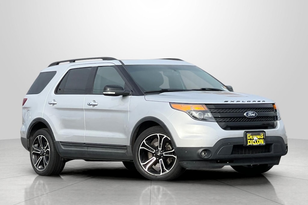 Ingot Silver Metallic 2013 Ford Explorer Sport 4WD 6-Speed Automatic with Select-Shift 3.5L V6 4WD, 12 Speakers, 20" Machined Aluminum w/Painted Pockets Wheels, 3.16 Axle Ratio, 3rd row seats: split-bench, 4-Wheel Disc Brakes, ABS brakes, Air Conditioning, Alloy wheels, AM/FM radio: SiriusXM, Auto-dimming Rear-View mirror, Automatic temperature control, Bumpers: body-color, CD player, Compass, Delay-off headlights, Driver door bin, Driver vanity mirror, Dual front impact airbags, Dual front side impact airbags, Electronic Stability Control, Exterior Parking Camera Rear, Four wheel independent suspension, Front anti-roll bar, Front Bucket Seats, Front Center Armrest, Front dual zone A/C, Front fog lights, Front reading lights, Fully automatic headlights, Heated door mirrors, Heated front seats, Illuminated entry, Knee airbag, Low tire pressure warning, Occupant sensing airbag, Outside temperature display, Overhead airbag, Overhead console, Panic alarm, Passenger door bin, Passenger vanity mirror, Perforated Leather-Trimmed Heated Bucket Seats, Power door mirrors, Power driver seat, Power passenger seat, Power steering, Power windows, Premium audio system: Sony, Radio data system, Radio: Premium Audio System by Sony, Rear air conditioning, Rear anti-roll bar, Rear Parking Sensors, Rear reading lights, Rear seat center armrest, Rear window defroster, Rear window wiper, Remote keyless entry, Roof rack: rails only, Security system, Speed control, Speed-sensing steering, Speed-Sensitive Wipers, Split folding rear seat, Spoiler, Steering wheel mounted audio controls, Tachometer, Telescoping steering wheel, Tilt steering wheel, Traction control, Trip computer, Turn signal indicator mirrors, Variably intermittent wipers, 4WD.