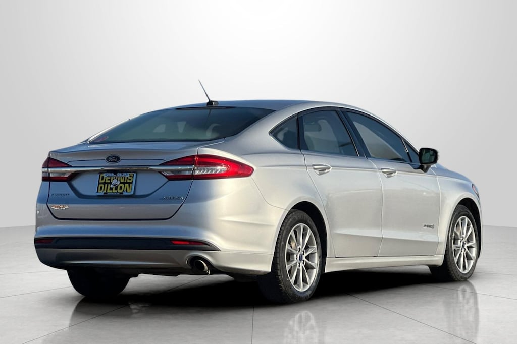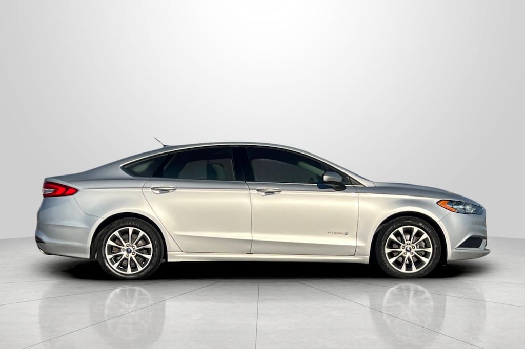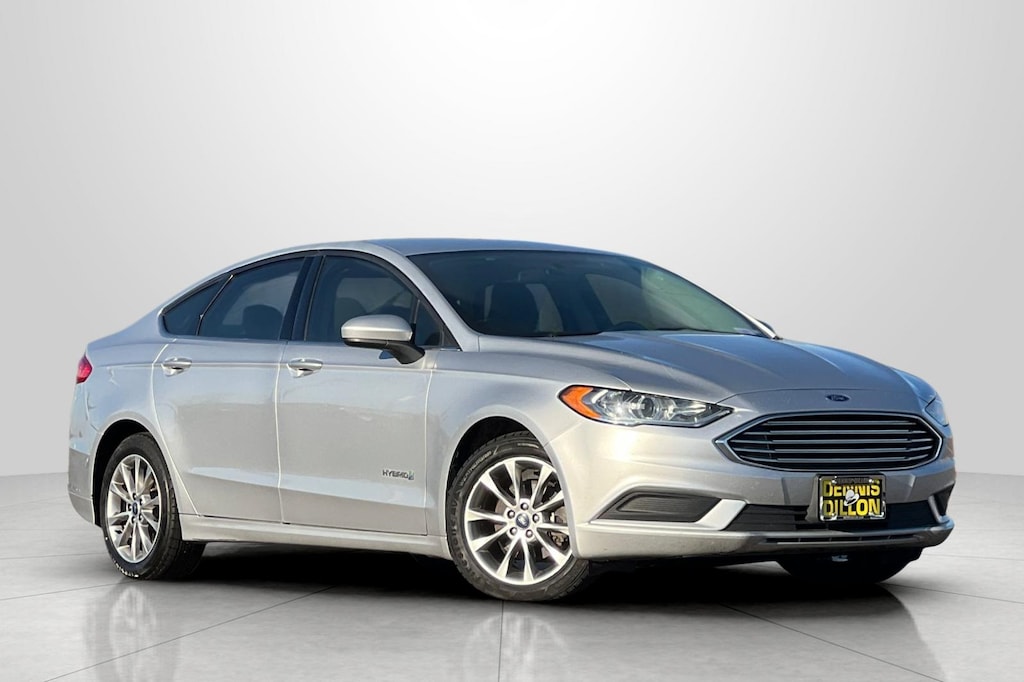 Ingot Silver 2017 Ford Fusion Hybrid S FWD eCVT I4 Hybrid I4 Hybrid, 4-Wheel Disc Brakes, 9 Speakers, ABS brakes, Air Conditioning, Alloy wheels, AM/FM radio, Automatic temperature control, Brake assist, Bumpers: body-color, CD player, Cloth Front Bucket Seats, Delay-off headlights, Driver door bin, Driver vanity mirror, Dual front impact airbags, Dual front side impact airbags, Electronic Stability Control, Emergency communication system: 911 Assist, Exterior Parking Camera Rear, Four wheel independent suspension, Front anti-roll bar, Front Bucket Seats, Front Center Armrest, Front dual zone A/C, Front reading lights, Fully automatic headlights, Illuminated entry, Knee airbag, Low tire pressure warning, Occupant sensing airbag, Overhead airbag, Overhead console, Panic alarm, Passenger door bin, Passenger vanity mirror, Power door mirrors, Power steering, Power windows, Radio data system, Radio: AM/FM Stereo w/MP3/Single-CD Player, Rear anti-roll bar, Rear reading lights, Rear window defroster, Remote keyless entry, Security system, Speed control, Speed-sensing steering, Speed-Sensitive Wipers, Split folding rear seat, Steering wheel mounted audio controls, SYNC Communications & Entertainment System, Tachometer, Telescoping steering wheel, Tilt steering wheel, Traction control, Trip computer, Variably intermittent wipers, Wheels: 17" Premium Painted Luster Nickel, I4 Hybrid.