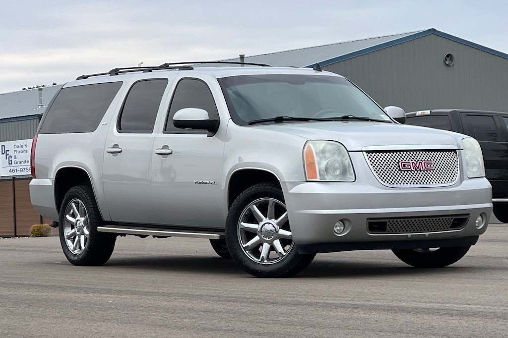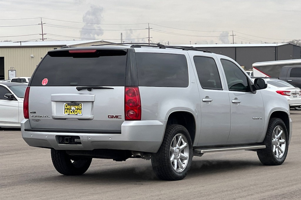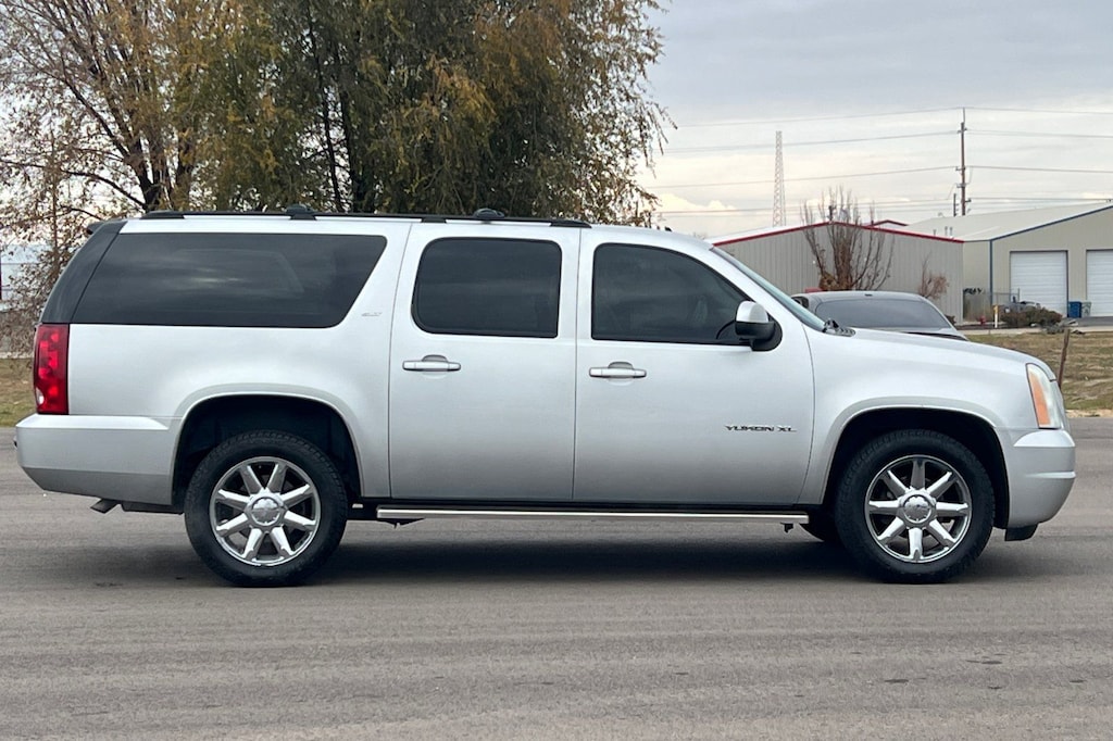 Sheer Silver Metallic 2010 GMC Yukon XL SLT 1500 4D Sport Utility 4WD 6-Speed Automatic Electronic with Overdrive Vortec 5.3L V8 SFI Flex Fuel Aluminum Block 4WD, 17" x 7.5" Bright Aluminum Sport Wheels, 2-Position Driver-Side Memory, 2nd Row Power Seat Release Only, 3.08 Rear Axle Ratio, 3rd row seats: split-bench, 4-Wheel Disc Brakes, 6-Way Power Front Passenger Seat Adjuster, 9 Speakers, ABS brakes, Adjustable pedals, Air Conditioning, Alloy wheels, AM/FM radio: XM, AM/FM Stereo w/CD/MP3 Playback, Automatic temperature control, Body-Color Power-Adjustable Heated Outside Mirrors, Bodyside moldings, Bumpers: body-color, CD player, Compass, Delay-off headlights, Driver door bin, Driver vanity mirror, Dual front impact airbags, Dual front side impact airbags, Electronic Stability Control, Emergency communication system: OnStar Directions & Connections, Exterior Parking Camera Rear, Floor Console, Front anti-roll bar, Front Bucket Seats, Front Center Armrest, Front dual zone A/C, Front fog lights, Front License Plate Bracket, Front reading lights, Front Reclining Bucket Seats, Front wheel independent suspension, Full-Feature Power Reclining Bucket Seats, Fully automatic headlights, Garage door transmitter, Heated 2nd Row Seats, Heated door mirrors, Illuminated entry, Low tire pressure warning, Occupant sensing airbag, Outside temperature display, Overhead airbag, Overhead console, Panic alarm, Passenger door bin, Passenger vanity mirror, Power door mirrors, Power driver seat, Power passenger seat, Power steering, Power windows, Premium Smooth Ride Suspension Package, Radio data system, Rear air conditioning, Rear anti-roll bar, Rear audio controls, Rear Power-Operated Liftgate, Rear reading lights, Rear seat center armrest, Rear window defroster, Rear window wiper, Remote keyless entry, Roof rack, Security system, SLT-1 Marketing Option Package, SLT-2 Equipment Package, Speed control, Split folding rear seat, Spoiler, Steering wheel mounted audio controls, Tachometer, Tilt steering wheel, Traction control, Trip computer, Ultrasoft Leather Appointed Seat Trim, Variably intermittent wipers, Voltmeter, XM Radio, 4WD.