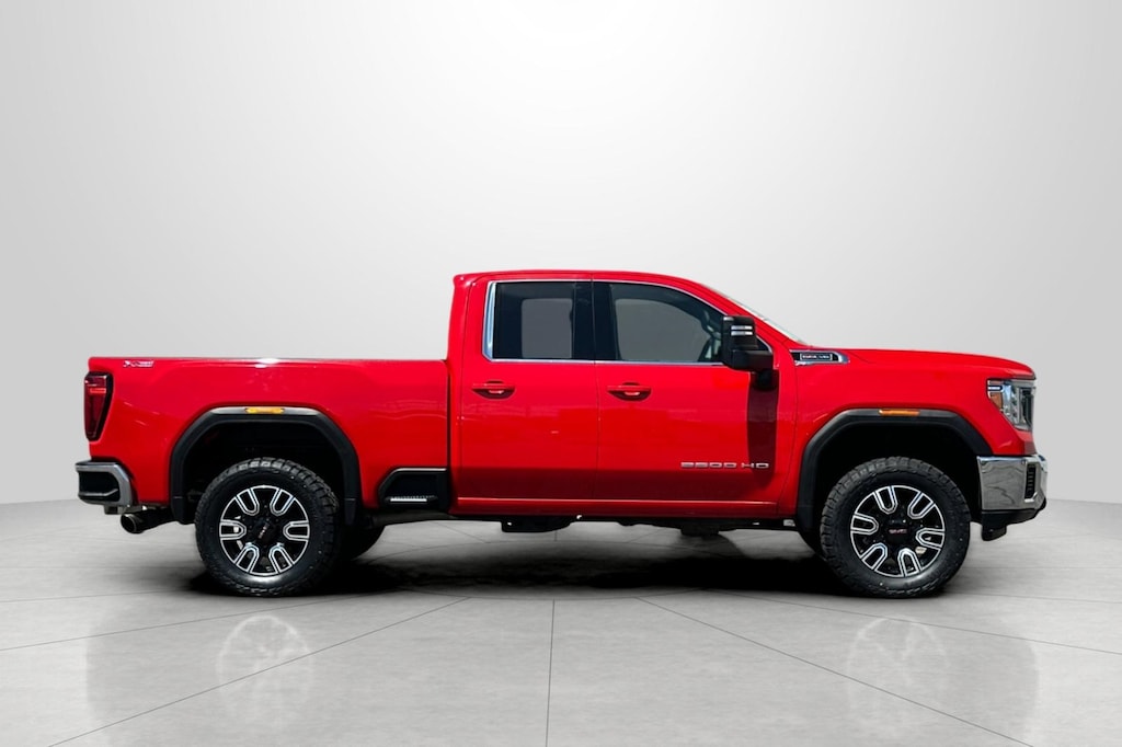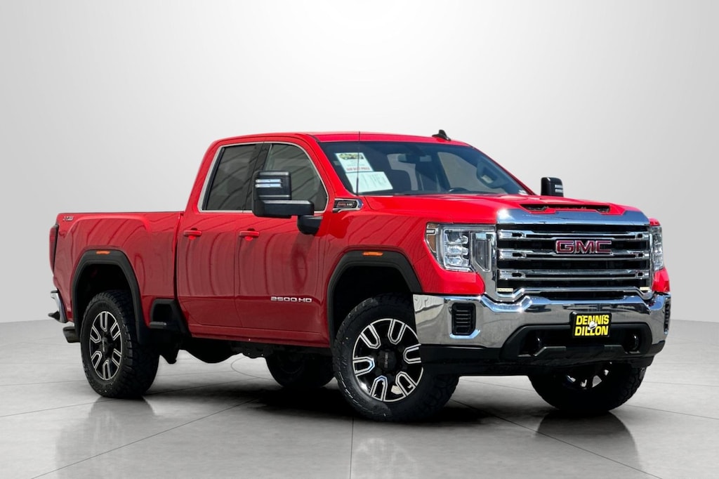 Red 2022 GMC Sierra 2500HD SLE 4WD 6-Speed Automatic 6.6L V8 6-Speed Automatic, 4WD, Gray Cloth, 17" Machined Aluminum Wheels, 2-Speed Electronic Shift Transfer Case, 3.73 Rear Axle Ratio, 4-Way Manual Driver Seat Adjuster, 4-Way Manual Passenger Seat Adjuster, 4-Wheel Disc Brakes, 6 Speakers, 6-Speaker Audio System Feature, ABS brakes, Air Conditioning, Alloy wheels, AM/FM radio: SiriusXM, Apple CarPlay/Android Auto, Brake assist, Bumpers: chrome, Chrome Surround Grille w/High Gloss Black Mesh, Cloth Seat Trim, Compass, Compass Located In Instrument Cluster, Deep-Tinted Glass, Delay-off headlights, Driver door bin, Driver vanity mirror, Dual front impact airbags, Dual front side impact airbags, Electronic Stability Control, Emergency communication system: OnStar and GMC Connected Services capable, Front 40/20/40 Split-Bench Seats, Front anti-roll bar, Front Center Armrest w/Storage, Front reading lights, Front wheel independent suspension, Fully automatic headlights, GMC Connected Access Capable, Heated door mirrors, Heavy-Duty 80 Amp Battery, Illuminated entry, Integrated Trailer Brake Controller, Low tire pressure warning, Manual Tilt Wheel Steering Column, Occupant sensing airbag, OnStar & GMC Connected Services Capable, Outside temperature display, Overhead airbag, Overhead console, Panic alarm, Passenger door bin, Passenger vanity mirror, Pickup Box, Power Door Locks, Power door mirrors, Power Front Windows w/Passenger Express Down, Power Rear Windows w/Express Down, Power steering, Power windows, Power Windows w/Driver Express Up/Down, Premium audio system: GMC Infotainment System, Radio: AM/FM w/GMC Infotainment System, Rear reading lights, Rear step bumper, Remote Keyless Entry, Remote keyless entry, SiriusXM Radio, Speed control, Split folding rear seat, Steering Wheel Audio Controls, Steering wheel mounted audio controls, Suspension Package, Tachometer, Tilt steering wheel, Traction control, Trip computer, Turn signal indicator mirrors, Variably intermittent wipers, Voltmeter, Wi-Fi Hotspot Capable, 6-Speed Automatic, 4WD, Gray Cloth.