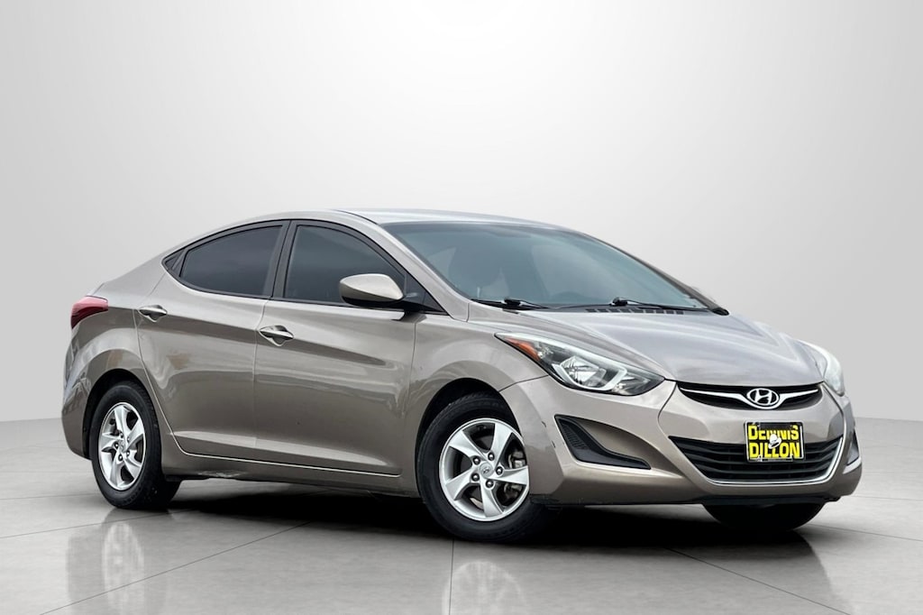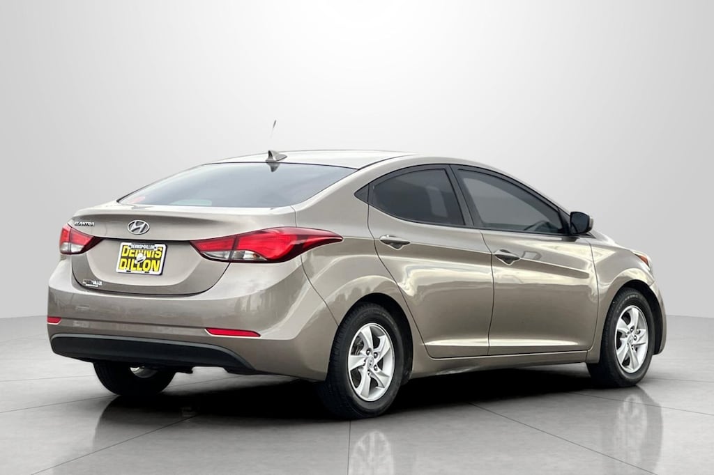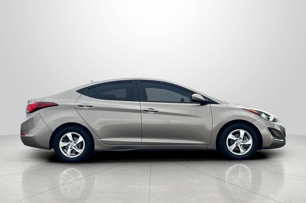Desert Bronze 2015 Hyundai Elantra SE FWD 6-Speed Automatic with Shiftronic 1.8L I4 MPI DOHC 16V ULEV II 145hp 15" Alloy Wheels, 4-Wheel Disc Brakes, 6 Speakers, ABS brakes, Air Conditioning, Alloy wheels, AM/FM radio: SiriusXM, Brake assist, Bumpers: body-color, CD player, Delay-off headlights, Driver door bin, Driver vanity mirror, Dual front impact airbags, Dual front side impact airbags, Electronic Stability Control, Front anti-roll bar, Front Bucket Seats, Front Center Armrest w/Storage, Front reading lights, Front wheel independent suspension, Heated door mirrors, Illuminated entry, Low tire pressure warning, Occupant sensing airbag, Option Group 1, Outside temperature display, Overhead airbag, Overhead console, Panic alarm, Passenger door bin, Passenger vanity mirror, Power door mirrors, Power steering, Power windows, Premium Cloth Seat Trim, Radio: AM/FM/CD/MP3 w/SiriusXM Satellite, Rear anti-roll bar, Rear seat center armrest, Rear window defroster, Remote keyless entry, Security system, Speed control, Speed-sensing steering, Split folding rear seat, Tachometer, Telescoping steering wheel, Tilt steering wheel, Traction control, Trip computer, Variably intermittent wipers.