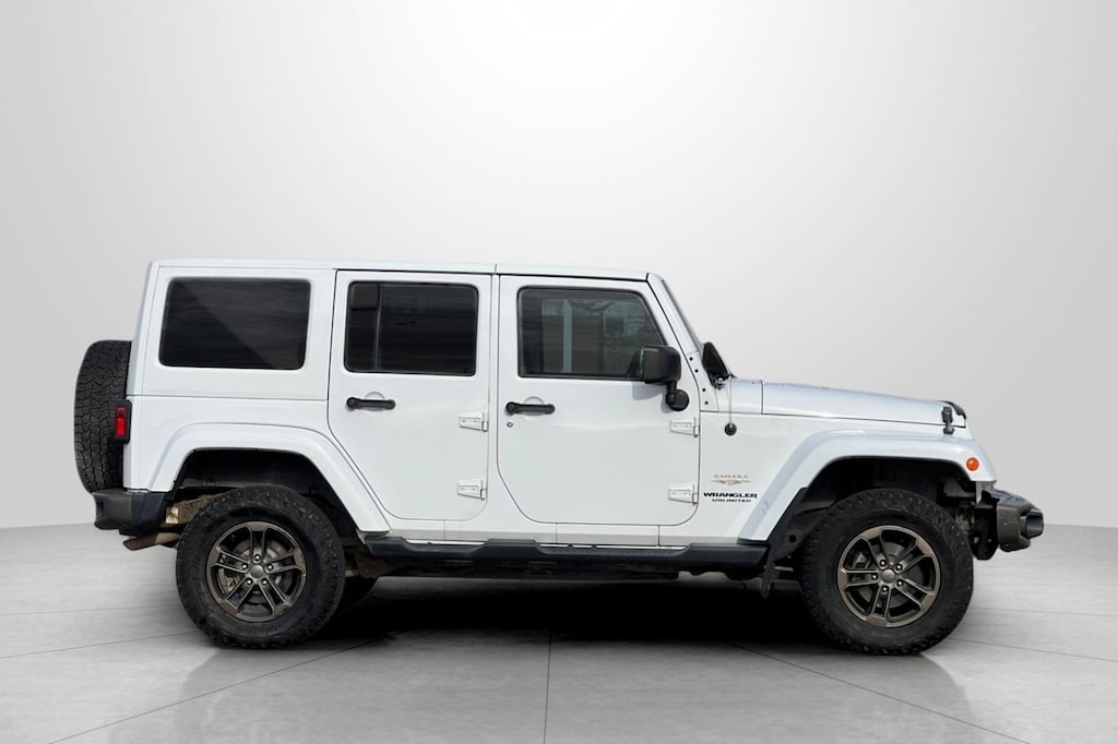 Bright White Clearcoat 2013 Jeep Wrangler Unlimited Sahara 4WD 6-Speed Manual 3.6L V6 24V VVT 1-Year SIRIUSXM Travel Link Service, 18" x 7.5" 7-Spoke Polished Aluminum Wheels, 18" x 7.5" Polished Satin Carbon Wheels, 4-Wheel Disc Brakes, 40GB Hard Drive w/28GB Available, 6.5" Touch Screen Display, 7 Speakers, ABS brakes, Air Conditioning, Air Conditioning w/Auto Temperature Control, Air Filtering, Alloy wheels, AM/FM radio: SIRIUS, Audio Jack Input for Mobile Devices, Auto-dimming Rear-View mirror, Brake assist, CD player, Cloth Bucket Seats, Compass, Connectivity Group, Driver door bin, Driver vanity mirror, Dual front impact airbags, Electronic Stability Control, Freedom Panel Storage Bag, Front anti-roll bar, Front Bucket Seats, Front Center Armrest w/Storage, Front fog lights, Front reading lights, Fully automatic headlights, GPS Navigation, Heated door mirrors, Heated Front Seats, Heavy Duty Suspension w/Gas Shocks, Illuminated entry, Integrated roll-over protection, Leather steering wheel, Low tire pressure warning, Occupant sensing airbag, Outside temperature display, Panic alarm, Passenger door bin, Passenger vanity mirror, Power door mirrors, Power steering, Power windows, Quick Order Package 23G, Radio data system, Radio: Uconnect 130 AM/FM/CD/MP3, Radio: Uconnect 430N CD/DVD/MP3/HDD/NAV, Rear anti-roll bar, Rear Window Defroster, Rear Window Wiper/Washer, Remote keyless entry, Remote USB Port, Security system, SiriusXM Travel Link, Speed control, Split folding rear seat, Steering wheel mounted audio controls, Tachometer, Tilt steering wheel, Tire Pressure Monitoring Display, Traction control, Trip computer, Variably intermittent wipers, Vehicle Information Center.