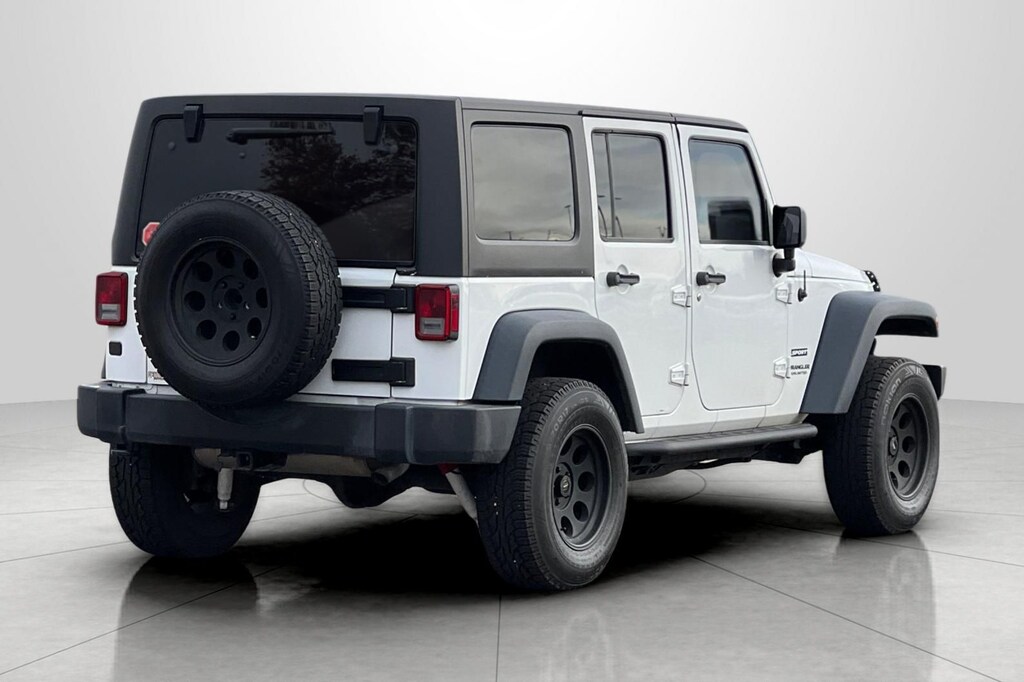 Bright White Clearcoat 2016 Jeep Wrangler Unlimited Sport 4D Sport Utility 4WD 5-Speed Automatic 3.6L V6 24V VVT 1-Yr SiriusXM Radio Service, 16" x 7.0" Luxury Styled Steel Wheels, 17" x 7.5" Aluminum Wheels, 4-Wheel Disc Brakes, 8 Speakers, ABS brakes, Air Conditioning, AM/FM radio, Anti-Spin Differential Rear Axle, Audio Jack Input for Mobile Devices, Auto-Dimming Mirror w/Reading Lamp, Black 3-Piece Hard Top, Brake assist, CD player, Chrome/Leather Wrapped Shift Knob, Class II Receiver Hitch, Cloth Seats w/Adjustable Head Restraints, Compass, Connectivity Group, Deep Tint Sunscreen Windows, Delete Sunrider Soft Top, Driver door bin, Driver vanity mirror, Dual front impact airbags, Electronic Stability Control, Freedom Panel Storage Bag, Front 1-Touch Down Power Windows, Front anti-roll bar, Front Bucket Seats, Front Center Armrest w/Storage, Front fog lights, Integrated roll-over protection, Jeep Trail Rated Kit, Leather Wrapped Steering Wheel, Low tire pressure warning, Manufacturer's Statement of Origin, Normal Duty Suspension, Occupant sensing airbag, Outside temperature display, Passenger door bin, Passenger vanity mirror, Power Convenience Group, Power Heated Mirrors, Power Locks, Power steering, Quick Order Package 24S, Radio: 130, Radio: 430, Rear anti-roll bar, Rear Window Defroster, Rear Window Wiper/Washer, Remote Keyless Entry, Remote USB Port, Security Alarm, SIRIUS Satellite Radio, Speed control, Split folding rear seat, Steering wheel mounted audio controls, Sunrider Soft Top, Tachometer, Tilt steering wheel, Tinted Rear Quarter & Liftgate Windows, Tire Pressure Monitoring Display, Traction control, Trailer Tow Group, Trailer Tow w/4-Pin Connector Wiring, Trip computer, Uconnect Voice Command w/Bluetooth, Variably intermittent wipers, Vehicle Information Center.