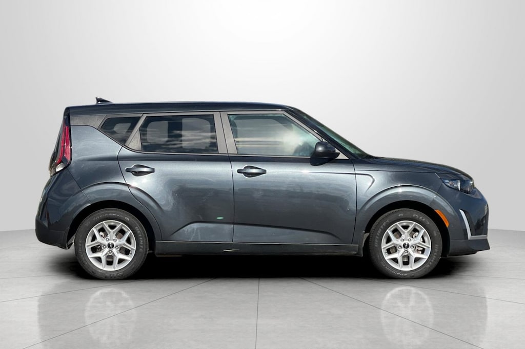 Gravity Gray 2023 Kia Soul S FWD CVT 2.0L I4 DOHC 16" Alloy Wheels, 4-Wheel Disc Brakes, 6 Speakers, ABS brakes, Air Conditioning, Alloy wheels, AM/FM radio: SiriusXM, Apple CarPlay & Android Auto, Auto High-beam Headlights, Automatic temperature control, Brake assist, Bumpers: body-color, Carpeted Floor Mats, Compass, Delay-off headlights, Driver door bin, Driver vanity mirror, Dual front impact airbags, Dual front side impact airbags, Electronic Stability Control, Emergency communication system, Envelope Cargo Net, Exterior Parking Camera Rear, Front anti-roll bar, Front Bucket Seats, Front Center Armrest, Front dual zone A/C, Front reading lights, Front wheel independent suspension, Fully automatic headlights, Illuminated entry, Low tire pressure warning, Navigation System, Occupant sensing airbag, Outside temperature display, Overhead airbag, Overhead console, Panic alarm, Passenger door bin, Passenger vanity mirror, Power door mirrors, Power driver seat, Power steering, Power windows, Radio data system, Radio: AM/FM/MP3/HD Audio System, Rear window defroster, Rear window wiper, Remote keyless entry, Speed control, Speed-sensing steering, Split folding rear seat, Standard Mudguards, Steering wheel mounted audio controls, Tachometer, Telescoping steering wheel, Tilt steering wheel, Traction control, Trip computer, Variably intermittent wipers, Woven & Tricot Cloth Seat Trim.