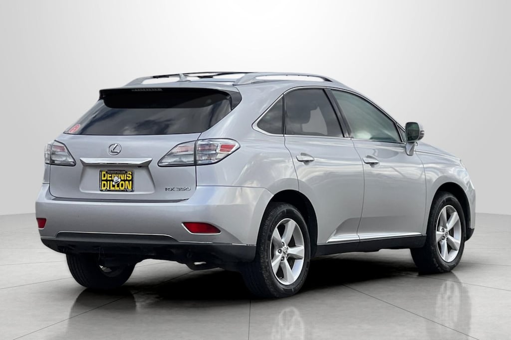 Silver 2011 Lexus RX 350 AWD 6-Speed Automatic with Sequential Shift ECT-i 3.5L V6 DOHC Dual VVT-i 24V AWD, Black Cloth, 18" x 7.5" 5-Spoke Aluminum Wheels, 4-Wheel Disc Brakes, 4.398 Axle Ratio, 9 Speakers, ABS brakes, Air Conditioning, Alloy wheels, AM/FM radio: XM, Anti-whiplash front head restraints, Auto-dimming Rear-View mirror, Automatic temperature control, Bluetooth®, Brake assist, Bumpers: body-color, CD player, Compass, Delay-off headlights, Driver door bin, Driver vanity mirror, Dual front impact airbags, Dual front side impact airbags, Electronic Stability Control, Emergency communication system: Safety Connect, Fabric Seat Trim, Four wheel independent suspension, Front anti-roll bar, Front Bucket Seats, Front Center Armrest, Front dual zone A/C, Front fog lights, Front reading lights, Fully automatic headlights, Garage door transmitter: HomeLink, Genuine wood console insert, Genuine wood door panel insert, Heated door mirrors, Illuminated entry, Knee airbag, Leather steering wheel, Low tire pressure warning, Occupant sensing airbag, Outside temperature display, Overhead airbag, Overhead console, Panic alarm, Passenger door bin, Passenger vanity mirror, Power door mirrors, Power driver seat, Power passenger seat, Power steering, Power windows, Radio data system, Rear anti-roll bar, Rear reading lights, Rear seat center armrest, Rear side impact airbag, Rear window defroster, Rear window wiper, Remote keyless entry, Roof rack: rails only, Security system, Speed control, Speed-sensing steering, Split folding rear seat, Spoiler, Steering wheel mounted audio controls, Tachometer, Telescoping steering wheel, Tilt steering wheel, Traction control, Trip computer, Turn signal indicator mirrors, Variably intermittent wipers, AWD, Black Cloth.