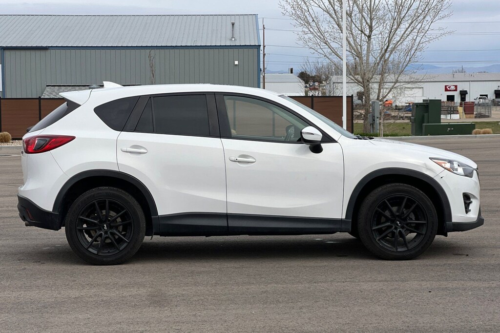 Crystal White Pearl Mica 2016 Mazda CX-5 Touring AWD 6-Speed Automatic SKYACTIV® 2.5L 4-Cylinder DOHC 16V 17 x 7J Aluminum Alloy Wheels, 4-Wheel Disc Brakes, 4.62 Axle Ratio, 6 Speakers, ABS brakes, Air Conditioning, Alloy wheels, AM/FM radio, Bose 9-Speaker Audio Sound System, BOSE/Moonroof Package, Brake assist, Bumpers: body-color, CD player, Cloth Seat Trim, Delay-off headlights, Driver door bin, Driver vanity mirror, Dual front impact airbags, Dual front side impact airbags, Electronic Stability Control, Emergency communication system: Mazda Connect, Exterior Parking Camera Rear, Four wheel independent suspension, Front anti-roll bar, Front Bucket Seats, Front Center Armrest, Front fog lights, Front reading lights, Heated front seats, Illuminated entry, Leather Shift Knob, Low tire pressure warning, Navigation System, Occupant sensing airbag, Outside temperature display, Overhead airbag, Overhead console, Panic alarm, Passenger door bin, Passenger vanity mirror, Power door mirrors, Power driver seat, Power Sliding-Glass Moonroof w/Interior Sunshade, Power steering, Power windows, Radio data system, Radio: AM/FM/CD/HD Modular Audio System w/6 Spkrs, Rear anti-roll bar, Rear reading lights, Rear seat center armrest, Rear window defroster, Rear window wiper, Remote keyless entry, Speed control, Speed-sensing steering, Split folding rear seat, Spoiler, Steering wheel mounted audio controls, Tachometer, Telescoping steering wheel, Tilt steering wheel, Traction control, Trip computer, Turn signal indicator mirrors, Variably intermittent wipers.