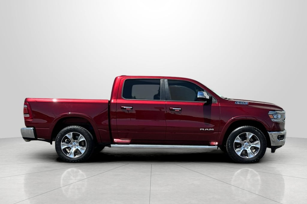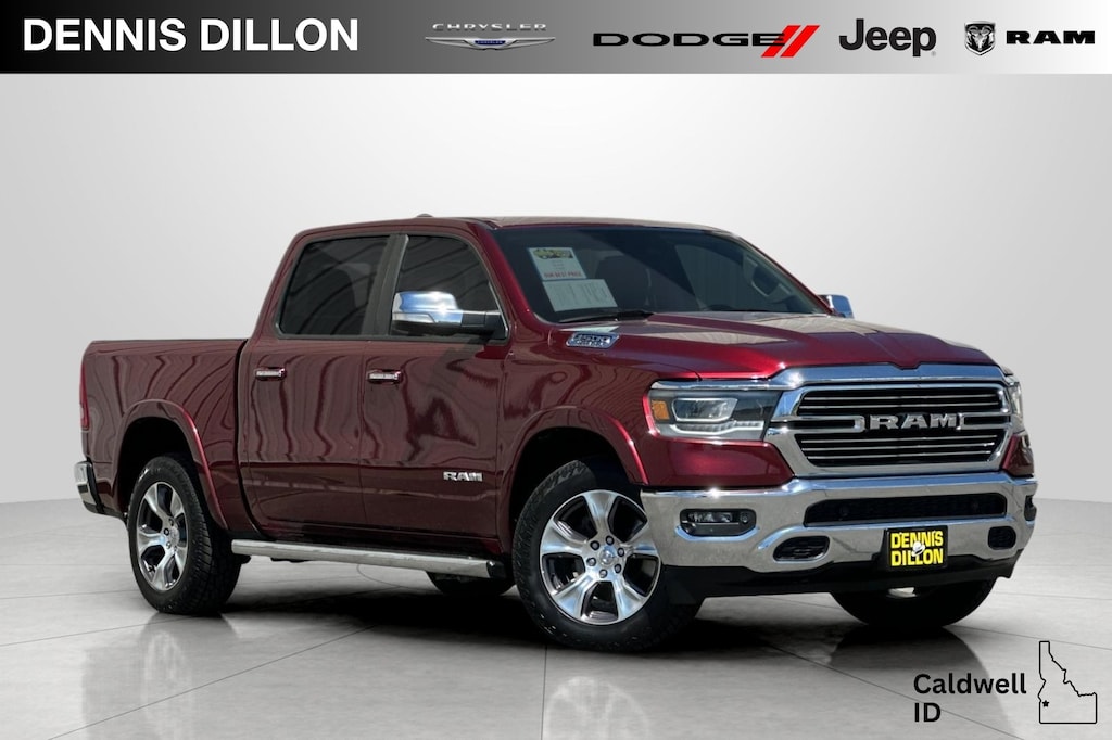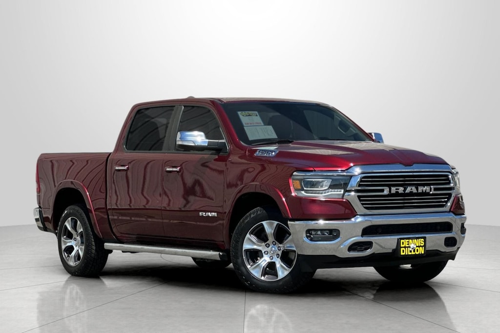 Delmonico Red Pearlcoat 2022 Ram 1500 Laramie 4WD 8-Speed Automatic HEMI 5.7L V8 Multi Displacement VVT #1 Seat Foam Cushion, 10 Speakers, 2nd Row In Floor Storage Bins, 3 Rear Seat Head Restraints, 3.21 Rear Axle Ratio, 33 Gallon Fuel Tank, 4 Way Front Headrests, 4-Wheel Disc Brakes, 48V Belt Starter Generator, 4G LTE Wi-Fi Hot Spot, 8.4" Touchscreen Display, ABS brakes, Adjustable pedals, Air Conditioning, Alloy wheels, AM/FM radio: SiriusXM, Apple CarPlay, Apple CarPlay/Android Auto, Audio memory, Auto High Beam Headlamp Control, Auto-dimming door mirrors, Auto-Dimming Exterior Driver Mirror, Auto-dimming Rear-View mirror, Automatic temperature control, Brake assist, Bumpers: chrome, Chrome Exterior Mirrors, Compass, Connectivity - US/Canada, Convex Wide-Angle Mirror Insert, Delay-off headlights, Driver door bin, Driver Seat Memory, Driver vanity mirror, Dual front impact airbags, Dual front side impact airbags, Electronic Stability Control, Exterior Mirrors Courtesy Lamps, Exterior Mirrors w/Heating Element, Exterior Mirrors w/Memory, Exterior Mirrors w/Supplemental Signals, Foam Bottle Insert (Door Trim Panel), For Details, Visit DriveUconnect.com, Front anti-roll bar, Front Center Armrest w/Storage, Front dual zone A/C, Front fog lights, Front License Plate Bracket, Front reading lights, Front Seat Back Map Pockets, Front wheel independent suspension, Fully automatic headlights, Garage door transmitter, Global Telematics Box Module (TBM), Google Android Auto, GPS Antenna Input, Heated door mirrors, Heated Front Seats, Heated front seats, Heated Steering Wheel, Heated steering wheel, Heavy-Duty Engine Cooling, Illuminated entry, Integrated Center Stack Radio, Laramie Level A Equipment Group (DISC), Leather steering wheel, Leather Trim 40/20/40 Bench Seat, Low tire pressure warning, Manufacturer's Statement of Origin, Memory seat, MOPAR Front & Rear Rubber Floor Mats, Occupant sensing airbag, Outside temperature display, Overhead airbag, Overhead console, Panic alarm, ParkSense Front/Rear Park Assist w/Stop, ParkView Rear Back-Up Camera, Passenger door bin, Passenger vanity mirror, Pedal memory, Power 2-Way Driver Lumbar Adjust, Power 2-Way Passenger Lumbar Adjust, Power 8-Way Driver & Passenger Seats, Power door mirrors, Power driver seat, Power passenger seat, Power steering, Power windows, Power-Folding Mirrors, Quick Order Package 25H Laramie, Radio data system, Radio: Uconnect 5 W w/8.4" Display, Rain Sensitive Windshield Wipers, Rear 60/40 Folding Seat, Rear 60/40 Folding Split Recline Seat, Rear anti-roll bar, Rear seat center armrest, Rear step bumper, Rear Underseat Compartment Storage (DISC), Rear window defroster, Remote keyless entry, Remote Tailgate Release, Security system, SiriusXM Radio Service, Speed control, Split folding rear seat, Steering wheel mounted audio controls, Tachometer, Telescoping steering wheel, Tilt steering wheel, Traction control, Trailer Brake Control, Trip computer, Turn signal indicator mirrors, Variably intermittent wipers, Ventilated Front Seats, Ventilated front seats, Voltmeter, Wheels: 18" x 8" Aluminum Base Painted, Wheels: 20" x 9" Premium Paint/Polished.