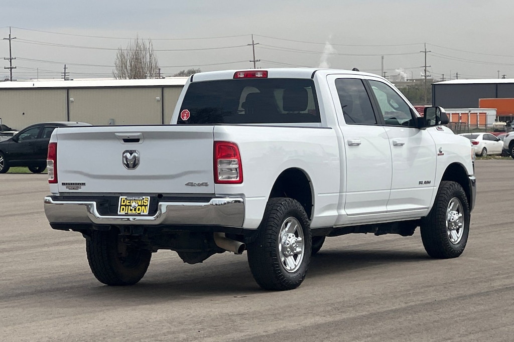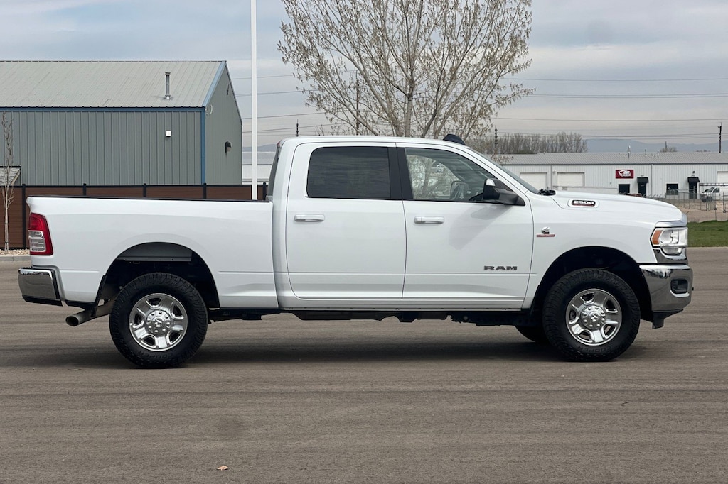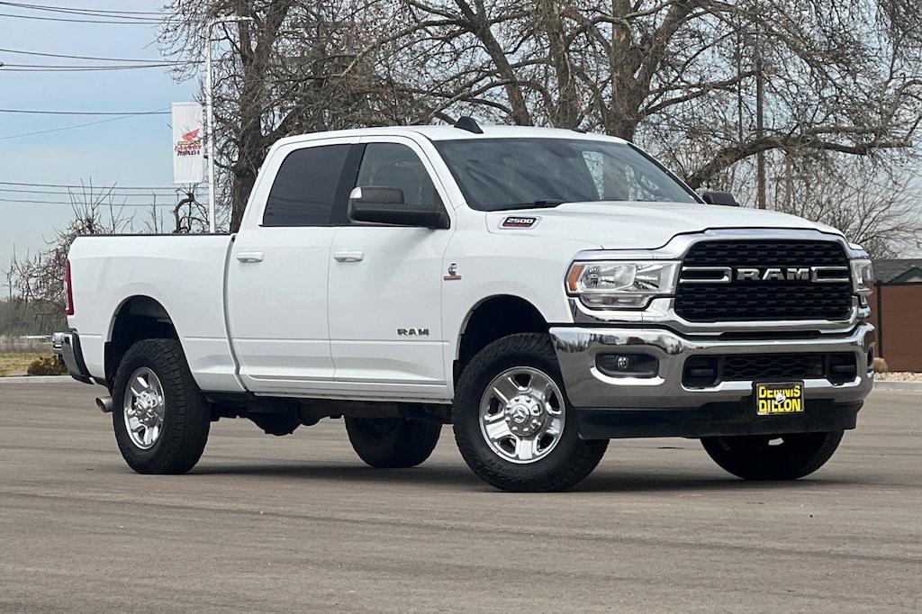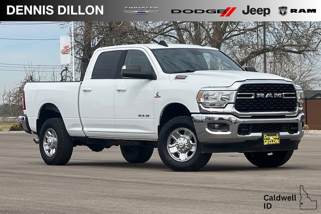 Bright White Clearcoat 2022 Ram 2500 Big Horn 4WD 6-Speed Automatic Cummins 6.7L I6 Turbodiesel 115V Auxiliary Front Power Outlet, 2 Way Rear Headrest Seat, 3.73 Axle Ratio, 4 Way Front Headrests, 4-Wheel Disc Brakes, 40/20/40 Split Bench Seat, 400W Inverter, 4G LTE Wi-Fi Hot Spot, 6 Speakers, 8.4" Touchscreen Display, ABS brakes, Active Noise Control System, Air Conditioning, AM/FM radio: SiriusXM, Apple CarPlay, Apple CarPlay/Android Auto, Bluetooth Handsfree Phone & Audio, Brake assist, Bumpers: chrome, Center Hub, Center Stack Storage Drawer, Cloth 40/20/40 Bench Seat, Cold Weather Group, Compass, Connectivity - US/Canada, Delay-off headlights, Driver door bin, Dual front impact airbags, Dual front side impact airbags, Electronic Stability Control, Electronically Controlled Throttle, Engine Block Heater, Exterior 115V AC Outlet, Front anti-roll bar, Front Center Armrest w/Storage, Front Fog Lamps, Front License Plate Bracket, Front reading lights, Fully automatic headlights, Global Telematics Box Module (TBM), Google Android Auto, GPS Antenna Input, Heated door mirrors, Illuminated entry, Integrated Center Stack Radio, Integrated Voice Command w/Bluetooth, Low tire pressure warning, Manual Adjust 4-Way Driver Seat, Manufacturer's Statement of Origin, MOPAR Front & Rear Rubber Floor Mats, MOPAR Winter Front Grille Cover, Occupant sensing airbag, Outside temperature display, Overhead airbag, Overhead console, Panic alarm, ParkView Rear Back-Up Camera, Passenger door bin, Passenger vanity mirror, Power door mirrors, Power steering, Power windows, Protection Group, Quick Order Package 2HZ Big Horn, Radio data system, Radio: Uconnect 5 W w/8.4" Display, Rear anti-roll bar, Rear Folding Seat, Rear seat center armrest, Rear step bumper, Remote keyless entry, Remote Start System, Selectable Tire Fill Alert, SiriusXM Radio Service, SiriusXM Satellite Radio, Speed control, Tachometer, Tilt steering wheel, Tip Start, Tow Hooks, Traction control, Trip computer, Turn signal indicator mirrors, Variably intermittent wipers, Vendor Painted Cargo Box, Vendor Painted Cargo Box Tracking, Voltmeter, Wheels: 18" x 8.0" Steel Chrome Clad.