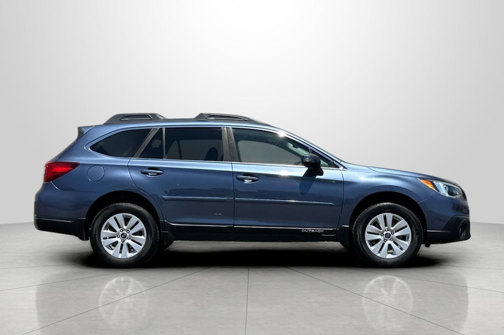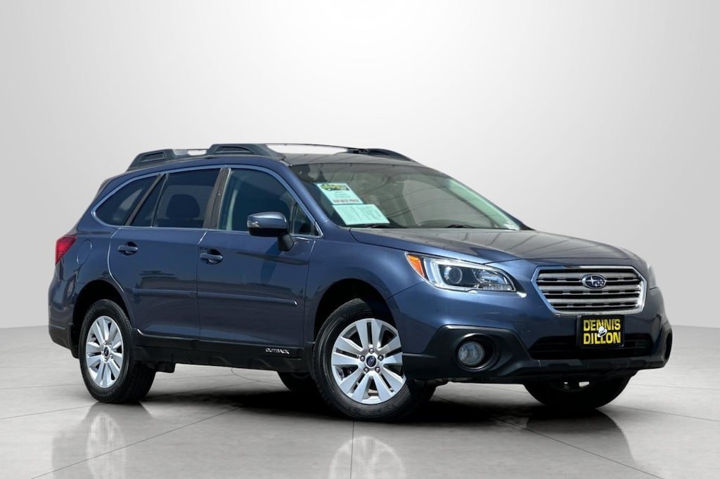 Twilight Blue Metallic 2017 Subaru Outback 2.5i Premium AWD CVT Lineartronic 2.5L 4-Cylinder DOHC 16V 17" x 7.0" Aluminum Alloy w/Silver Finish Wheels, 4-Wheel Disc Brakes, 4.111 Axle Ratio, 6 Speakers, ABS brakes, Adaptive Cruise Control, Air Conditioning, Alloy wheels, AM/FM radio: SiriusXM, Anti-whiplash front head restraints, Auto-Dimming Rear View Compass Mirror w/Homelink, Automatic temperature control, Blind Spot Detection (BSD), Brake assist, Bumpers: body-color, CD player, Cloth Upholstery, Driver door bin, Driver vanity mirror, Dual front impact airbags, Dual front side impact airbags, Electronic Stability Control, Emergency communication system, Exterior Parking Camera Rear, Four wheel independent suspension, Front anti-roll bar, Front Bucket Seats, Front Center Armrest w/Storage, Front dual zone A/C, Front fog lights, Front reading lights, Fully automatic headlights, Heated door mirrors, Heated front seats, Heated Reclining Front Bucket Seats, High Beam Assist, Illuminated entry, Lane Departure Warning System, Leather Shift Knob, Low tire pressure warning, Moonroof & Pwr Gate & Navi & EyeSight & Blind Spot, Navigation System, Occupant sensing airbag, Outside temperature display, Overhead airbag, Overhead console, Panic alarm, Passenger door bin, Passenger vanity mirror, Power door mirrors, Power driver seat, Power Moonroof Package, Power Rr Gate w/ Automatic Close & Height Memory, Power steering, Power windows, Pre-Collision System, Radio: Subaru Starlink 7.0" Multimedia Nav System, Radio: Subaru Starlink 7.0" Multimedia Plus System, Rear anti-roll bar, Rear Cross Traffic Alert (RCTA), Rear seat center armrest, Rear window defroster, Rear window wiper, Remote keyless entry, Roof rack, Security system, Smartphone Integration, Speed control, Speed-sensing steering, Split folding rear seat, Spoiler, Steering wheel mounted audio controls, Steering-Wheel Paddle-Shift Control Switches, Tachometer, Telescoping steering wheel, Tilt steering wheel, Traction control, Trip computer, Variably intermittent wipers, Vehicle Information Display.